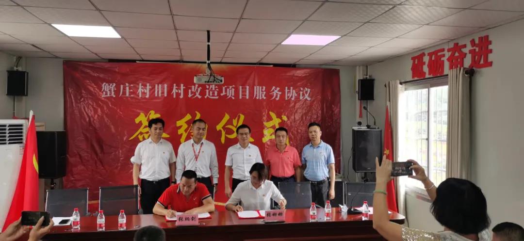 9月2日上午,黄埔区九佛街道蟹庄村旧村改造合作意向民主表决大会、蟹庄旧村改造项目服务协议签约仪式在蟹庄村委会议室隆重举行。九佛街党工委书记罗达祥、党工委委员、纪工委书记孙世科,蟹庄村第一书记林桂添、村委书记张炳钊,百乐博bIbo集团副总经理林晓锋,城更集团总经理赵永斌,科城中盛公司董事长张姗姗等出席了本次活动。