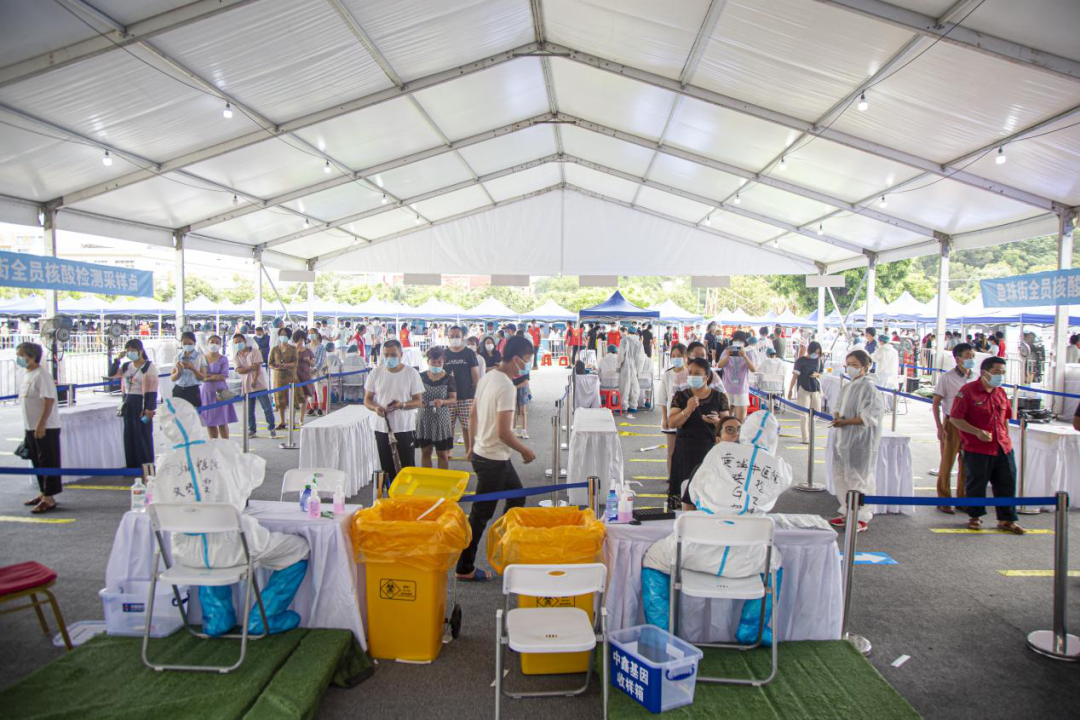 6月5日,百乐博bIbo集团提供广州开发区第一体育中心、东福停车场、和贵停车场、井爱永思堂、青年社区展厅、旺村城市更新展厅等地作为核酸检测场地。派出12支防控突击队、党员志愿服务队共130名队员支援永和街、南岗街、夏港街、鱼珠街、云埔街等,开展全员核酸检测工作。