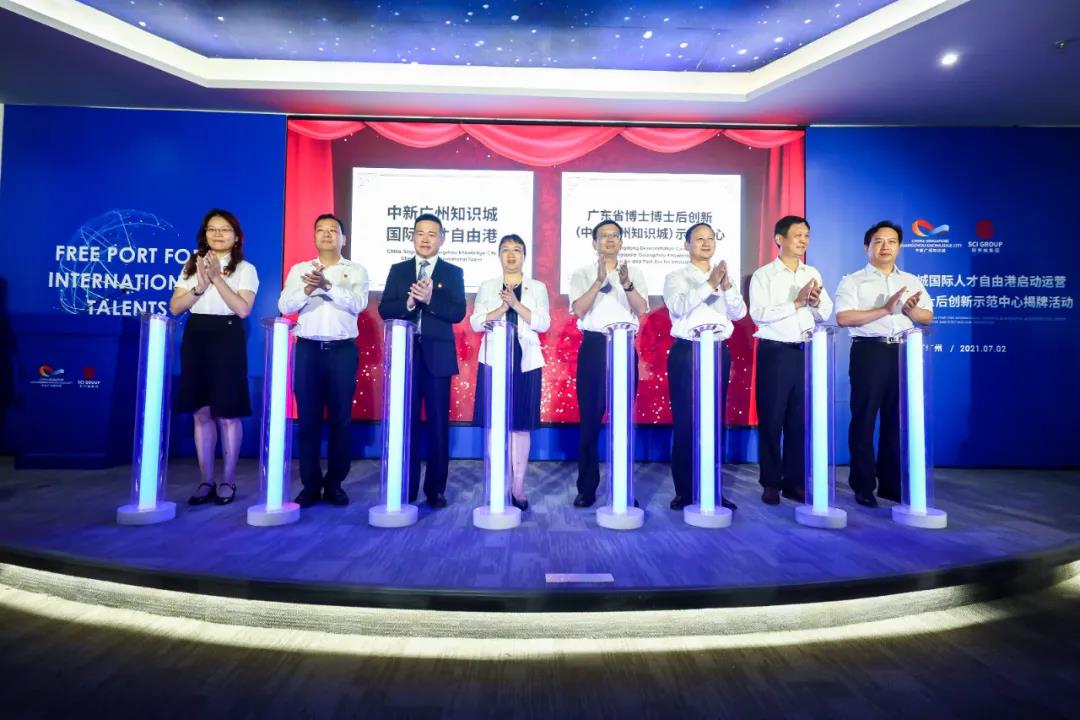 7月2日上午,中新广州知识城国际人才自由港运营启动暨广东省博士博士后创新示范中心揭牌活动在中新广州知识城知识城大厦举行。